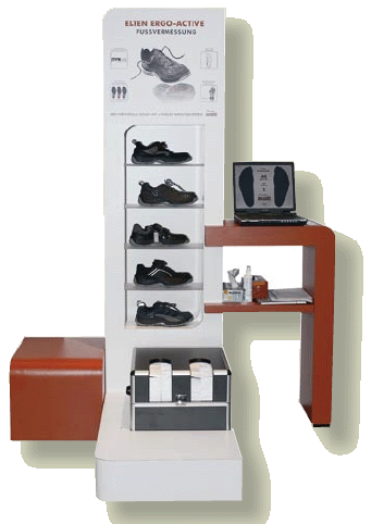 Omogočamo meritev nog za linijo obutve Ergo-Active. Sistem natančno izmeri nogo z visokoresolucijsko kamero in določi pravi vložek, ki se popolnoma prilega vašim nogam. Prenosna naprava je rezultat skupnega raziskovalnega dela z Tehnično univerzo Chemnitz in zazna bistveno več podrobnih podatkov, kot katerikoli ročni sistem.