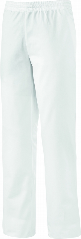 Elastične bele ženske hlače za delo v strežbi ali zdravstvu.