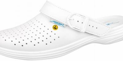 Beli delovni natikači Abeba z ESD zaščito, primerni za pranje.Več