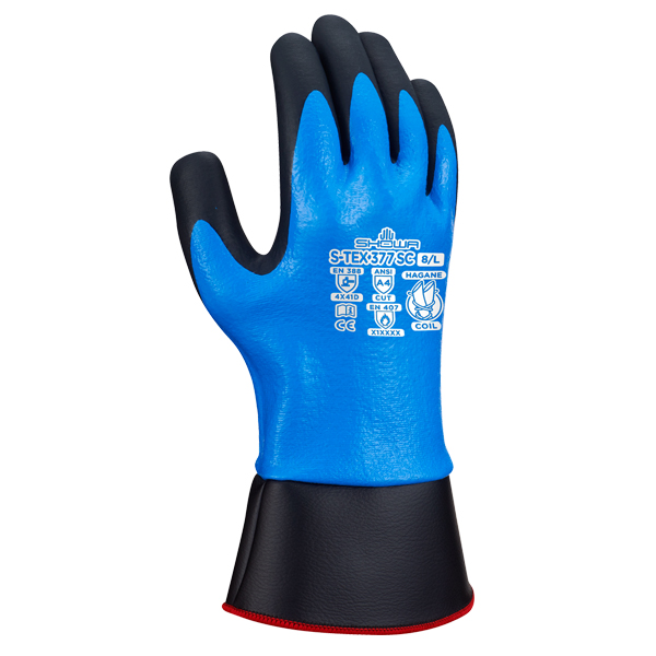 Značilnosti: Ergonomsko oblikovana rokavica z naravno ukrivljenostjo, zasnova za enostavno gibanje in dolgotrajno nošenje. Brezšivno pletenje, ne povzroča draženja. Neprepustna za tekočine. S-TEX tehnologija Hagane Coil® z visoko stopnjo odpornosti na prerez in udobja hkrati (tehnologija Hagane Coil® uporablja edinstveno tehniko ovijanja, kjer se vlakna ovijejo okoli drugih v več slojih, kar poveča stopnjo odpornosti). Dvojna nitrilna prevleka čez celotno rokavico zagotavlja visoko odpornost proti obrabi. Dodatni penjeni nitrilni nanos na dlaneh za večje udobje. Podaljšane močne čvrste varnostne manšete za večjo zaščito zapestja iz PVC / poliestra.